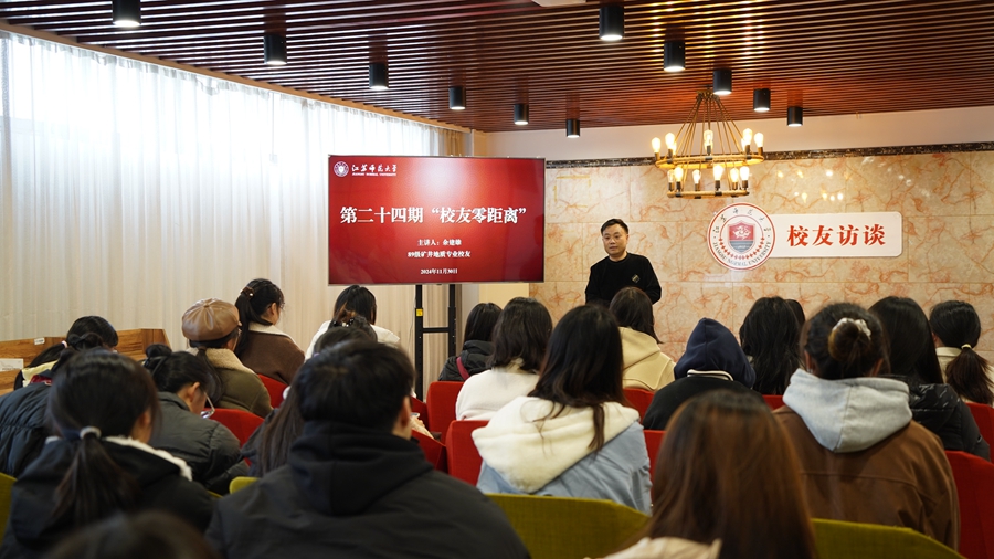 11月30日上午,第二十四期“校友零距離”在泉山校區(qū)舉行。89級礦井地質專業(yè)校友、貴州黔野鮮蹤科技有限公司總經理余建雄做客活動,與在場同學互動交流。