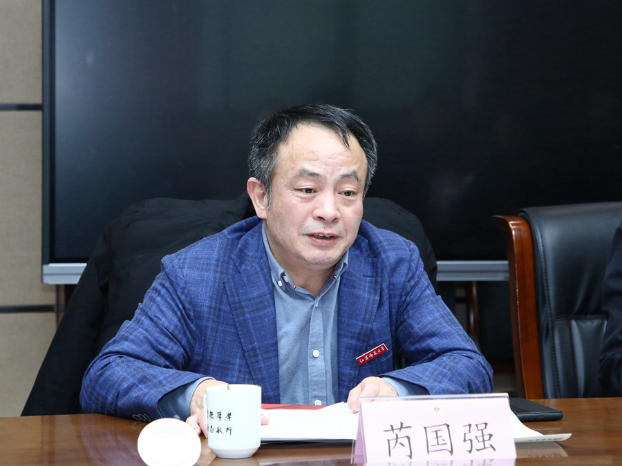 芮國強在會上致辭,對李貞強一行的到來表示熱烈歡迎,并簡要介紹了學校的基本情況以及與江蘇鳳凰出版傳媒集團有限公司的合作情況。芮國強表示,江蘇師大堅持文化潤心、書香致遠,連續舉辦多屆“大學生讀書節”、“中華誦”經典誦讀大賽等活動,打造了多個特色文化品牌活動,得到了包括鳳凰出版傳媒集團在內社會各界的大力支持和幫助,雙方建立了密切而友好的合作關系。芮國強表示,學校事業已進入內涵發展、特色發展、高質量發展的新階段,期待與鳳凰出版傳媒集團有更深入的交流合作,在教材出版推廣、文化傳承創新、數字資源開發、書香校園建設等多個方面攜手共建,共謀發展。