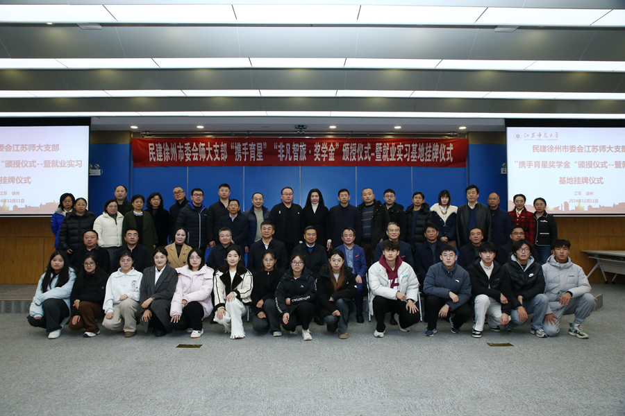 12月11日,民建徐州市委會江蘇師大支部“攜手育星獎學金”頒授暨就業實習基地掛牌儀式在分析測試中心300會議室舉行。民建江蘇省委會副主委、徐州市人民政府副市長、民建徐州市委會主委林斌,校黨委書記芮國強,校黨委常委、組織部部長、統戰部部長黃德志,民建徐州市委會副主委康建榮、孫統賢等出席會議。會議由校黨委副書記蔡國春主持,民建徐州市委會社會服務委員會全體委員,民建徐州市委江蘇師大支部全體會員,學校相關職能部門負責同志和獲獎學生代表參加了活動。