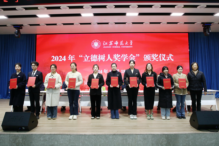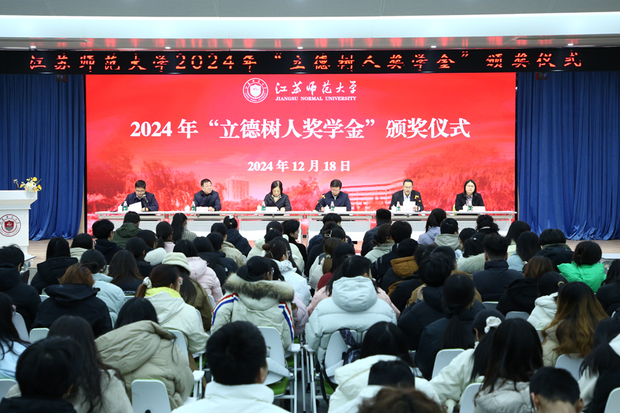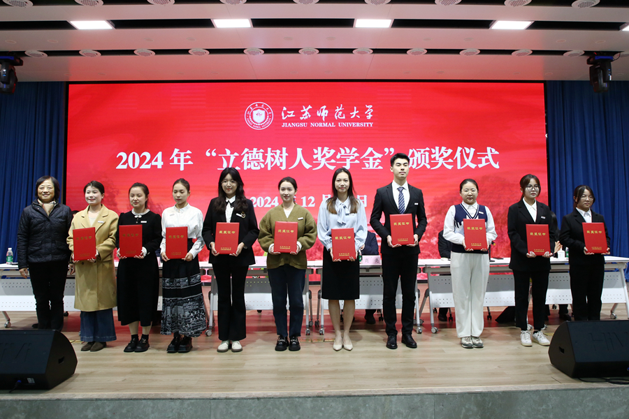 12月18日下午,我校2024年“立德樹(shù)人獎(jiǎng)學(xué)金”頒獎(jiǎng)儀式在泉山校區(qū)路演大廳舉行。江蘇省教育基金會(huì)常務(wù)副理事長(zhǎng)眭平,校黨委常委、副校長(zhǎng)商亮,江蘇省教育基金會(huì)副秘書(shū)長(zhǎng)陳虎,以及相關(guān)職能部門(mén)負(fù)責(zé)人出席會(huì)議,全體獲獎(jiǎng)同學(xué)及各學(xué)院輔導(dǎo)員、學(xué)生代表參加了會(huì)議。